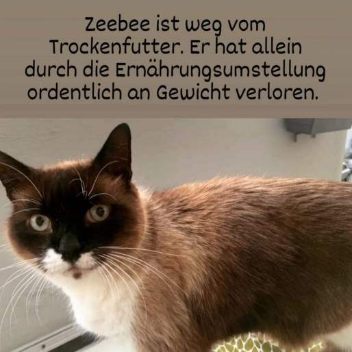 Schließlich hat sie mich bei der Futter-Umstellung unterstützt. Dafür hat sie sehr intensiv im Vorfeld recherchiert und einen Plan zusammengestellt, was für Zeebbee unter Berücksichtigung seiner individuellen Einschränkung und Bedürfnisse sinnvoll ist.